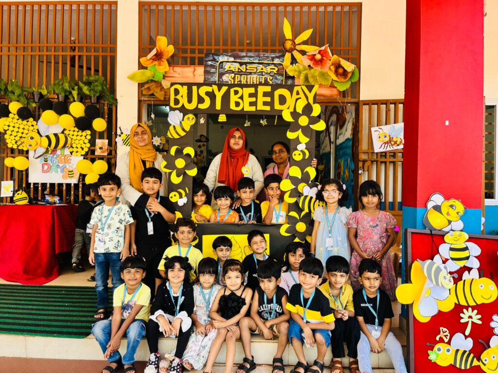 Ansar Sprouts Pre School celebrated Busy Bee Day on Friday, September 19, 2025, starting at 10:30 AM. The event, held at the Ansar Sprouts campus, featured themed activities tailored to different age groups. Pre-KG and Jr. KG students participated in a delightful Bee Dance, while Sr. KG students showcased their knowledge with a Theme-Based Bee Life Presentation. The day aimed to educate and entertain the young children about the life of bees in a fun, engaging way.
