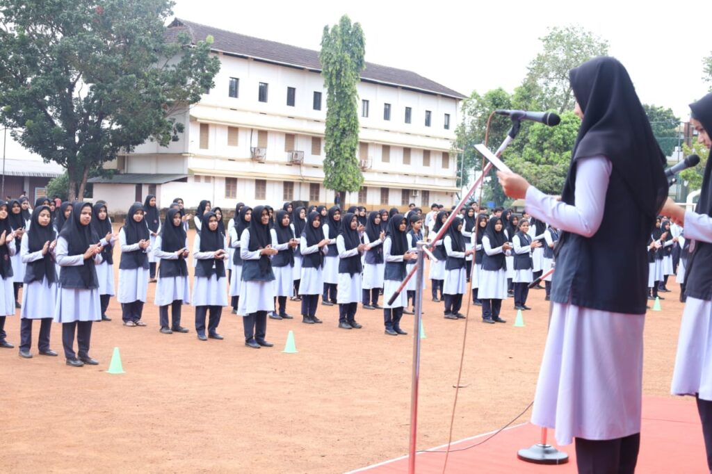 Alan Mary and Khadeeja Shafna voiced the school’s Vision and Mission with confidence, and the prize distribution celebrated the shining winners of Hackathon and Sristi. Anchors Haya Sharafudeen and Minha Ameer ensured a smooth flow, while sports captain Abdulla Kabeer’s warm-up session filled the ground with energy. The assembly concluded with the proud notes of the National Anthem—an inspiring morning of unity and peace.