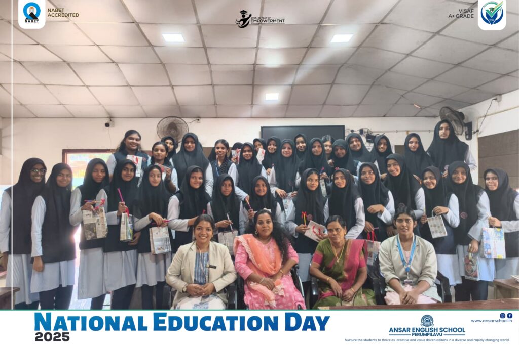 Ansar English School, Perumpilavu observed National Education Day with meaningful programmes conducted across various sections, celebrating the legacy of Maulana Abul Kalam Azad and the true spirit of education. The Higher Secondary Section organised the programme on 11 November, promoting quality education and creative learning through a Treasure Hunt, an interactive Quiz Wall and a Debate highlighting the importance of education, along with a heartfelt card distribution to teachers. The Primary Section celebrated on 12 November under the theme “Voices Across Time… Legends of Learning,” where students portrayed great education leaders such as Maulana Abul Kalam Azad, Dr. Radhakrishnan, Savitribai Phule, Dr. A.P.J. Abdul Kalam and Swami Vivekananda through lively speeches and dialogues, making the programme both informative and inspiring. The Middle Section conducted a community outreach programme at the Ansar Special School under the theme “Honouring the Spirit of Learning and Inclusion,” featuring story narration, soulful music performances, a storybook contribution to enrich the library and a teacher gratitude activity that nurtured empathy and inclusion. The celebrations concluded with a motivational and skill development programme organised by the Secondary Section on 13 November, which included a hands-on craft-making session on eco-friendly paper pens and bags, along with an inspiring session on perseverance, self-confidence and the power of education. Overall, the observance reflected the school’s commitment to nurturing