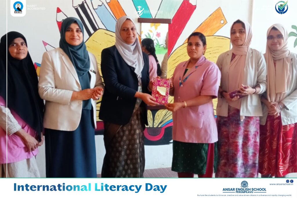 International Literacy Day was observed across different sections of Ansar English School with enthusiasm, creativity, and purpose. The Primary Section began the observance with book donations to the Library, the inauguration of the Teachers’ Library, and a Reading Competition for the non-teaching staff, along with a Literacy Pledge by students and teachers. The Middle Section observed the day on 8th September with a thoughtful speech, an inspiring skit on the importance of literacy, and a Spell Bee competition for Classes 6 to 8. The Secondary Section, led by Class IX A, observed the day on 10th September under the theme “One Life, One Book” through a Slogan Writing Competition and an engaging Know Your Book activity. Adding a modern dimension, the Senior Secondary Section marked the occasion on 11th September by displaying literacy-themed charts in the campus and conducting a digital literacy session for the housekeeping staff, equipping them with practical skills in software use, cyber safety, and safe social media practices. Together, these observances highlighted literacy as the cornerstone of learning, empowerment, and inclusive growth.