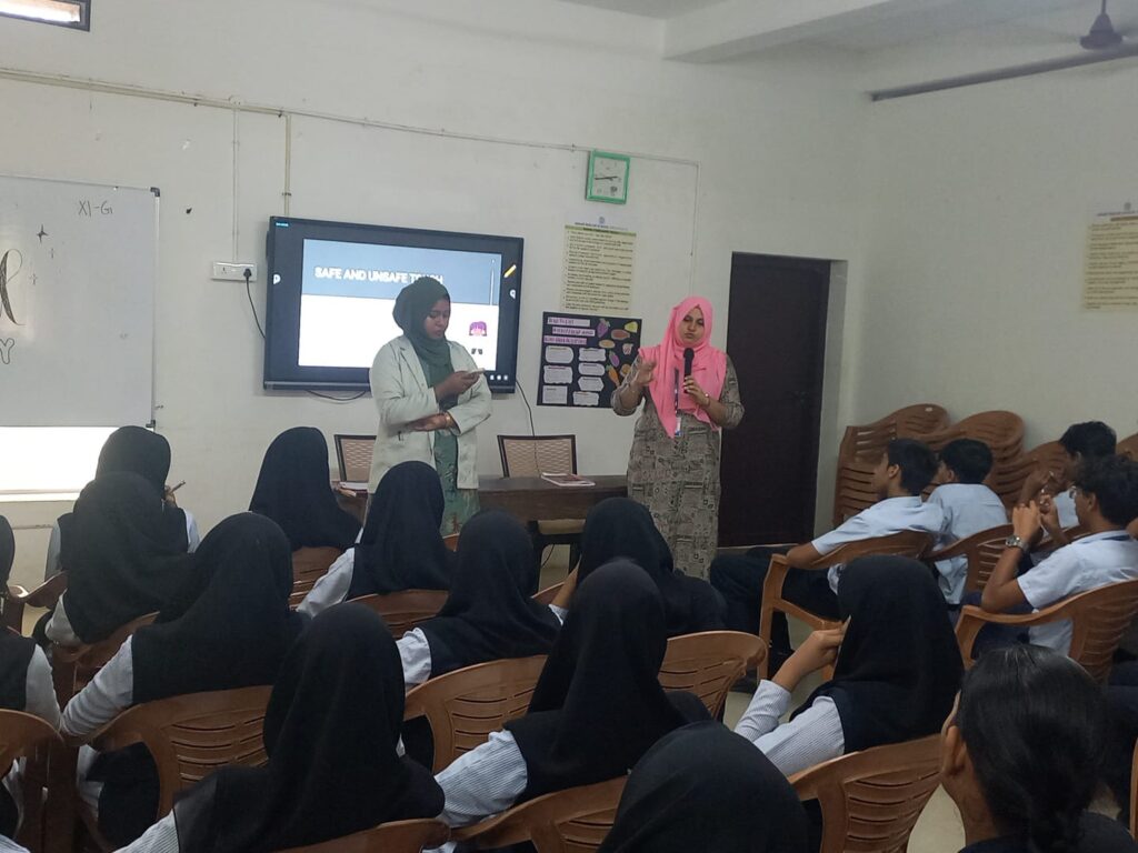 The session was led by Ms. Shereena N.M, School Counselor, and Ms. Thasneem N.A, Behaviour Therapist. They highlighted the importance of awareness in preventing abuse, identifying unsafe situations, and seeking timely help. Through interactive discussions and real-life examples, the resource persons encouraged students to be confident, vigilant, and responsible in ensuring their own safety and that of others.